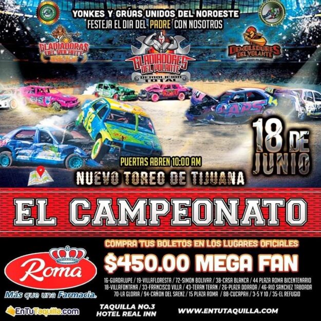 DianaRuvalcaba.com Este 18 de Junio festejaremos el día del Padre con El campeonato, un espectáculo que no te lo puedes perder. Yonkes y Gruas unidos del Noroeste te traen a Gladiadoras del Volante, Gladiadores del Volante y Demoledores del Volante. Exhibición y competencia para disfrutar en familia este dia tan especial. Adquiere tus boletos en…